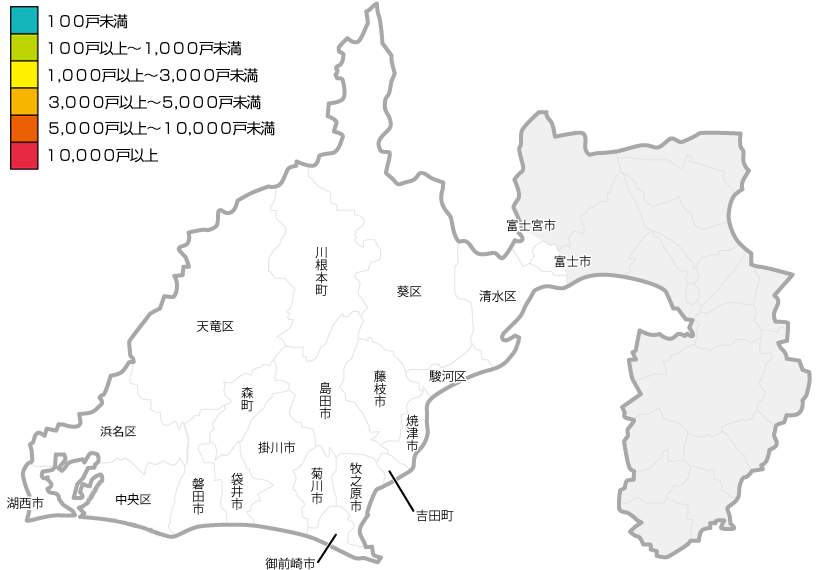富士市 富士宮市 浜松市北区 浜松市北区 浜松市東区 浜松市東区 袋井市 袋井市 浜松市南区 川根本町 静岡市葵区 湖西市 浜松市中区 浜松市浜北区 磐田市 森町 掛川市 御前崎市 菊川市 牧之原市 浜松市天竜区 吉田町 焼津市 藤枝市 静岡市駿河区 島田市 静岡市清水区 浜松市西区 浜松市西区