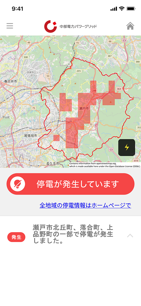 停電地区をマップでご案内。