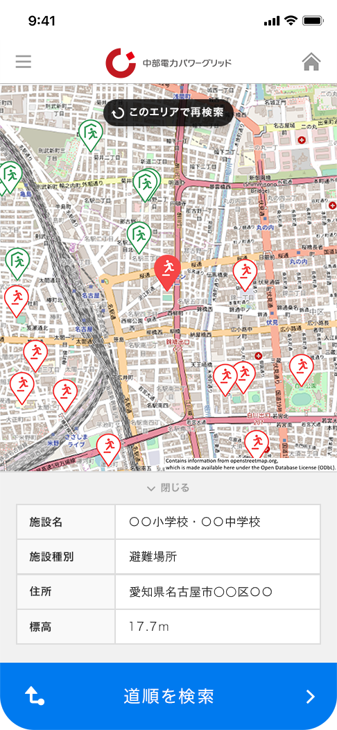 また、その避難所へのルートもご案内。道に迷う心配もありません。